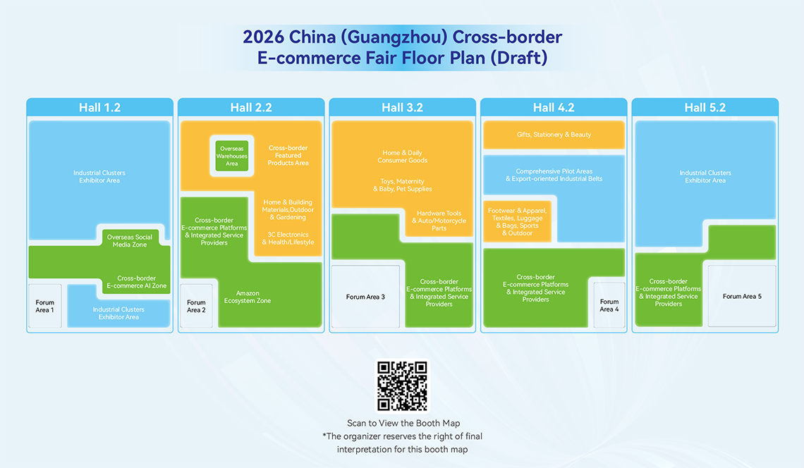 Looking ahead to the 2026 China (Guangzhou) Cross-border E-commerce Fair:The 2026 edition is planned to be held from 16 to 18 June 2026 at the China Import and Export Fair Complex, with an expected exhibition area of about 50,000 square metres. It will focus on three core exhibition zones: cross-border e-commerce comprehensive pilot zones, cross-border e-commerce platforms and service providers, and cross-border e-commerce supply chains. During the same period, the Fair will also host an opening ceremony, more than 30 forum sessions and a series of online livestreaming activities.